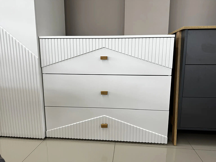 В набор входят кровать со спальным местом 2000х1600 мм, две тумбочки, комод и просторный шкаф. Кровать оснащена ламельным основанием и подъёмным механизмом. Матрас в набор не входит, его следует приобретать отдельно.