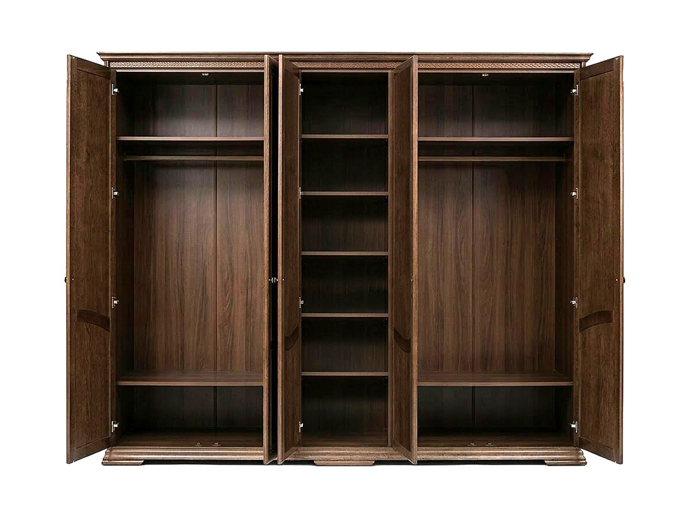 Средние дверцы оснащены ростовыми зеркалами с крупным фацетом, придающим стеклу сходство с драгоценным камнем.