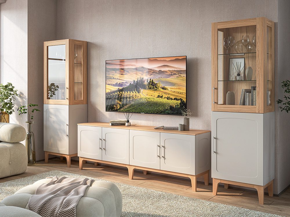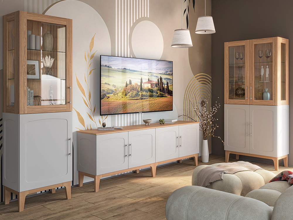 Гостиная «Рокси» - это новый формат современных гостиных. Обратите внимание на текстуру данной мебели, она выглядит современно и стильно. Коллекция представлена в двух расцветках: "Пепел Софт + Дуб Нокс" и "Грин Софт + Дуб Кантри золотой". Контрастное крашение каркаса и фасадов привлекает к себе все внимание и подчеркивает оригинальность интерьера вашей гостиной. Яркий дизайн и отличная эргономичность данной коллекции делают её отличным выбором для ценителей красивой и удобной мебели.
