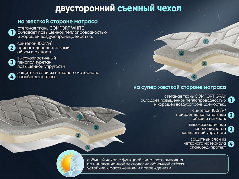 | Материал чехла: | микрофибра, объёмная стёжка с антиаллергенным наполнителем, ППУ и спанбондом; борт – велюр |