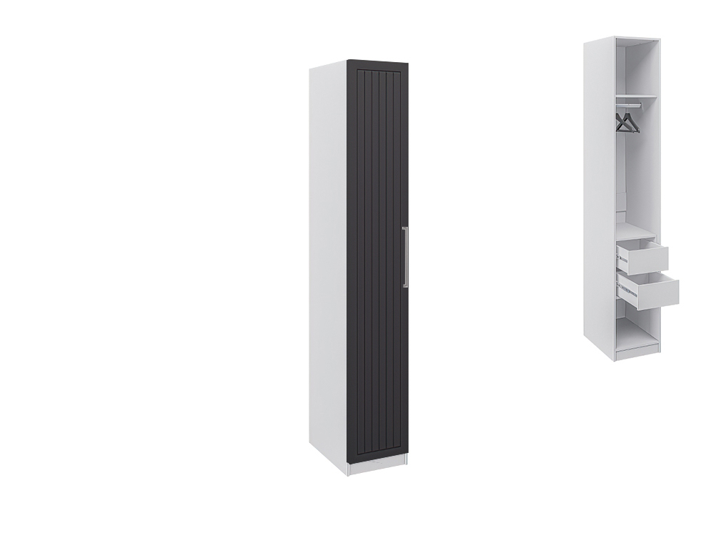 Шкаф однодверный шириной 400 мм с отделениями под одежду и двумя выдвижными ящиками, с направляющими полного выдвижения. Доступен к заказу как без фасадов, так и с фасадами из ЛДСП и МДФ. Также можно выбрать окраску в любой цвет по палитре RAL.