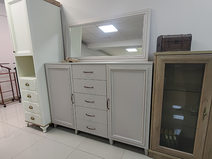 Зеркало из коллекции мебели «САТИ». Каркас изготовлен из ЛДСП. Крашение — «персидский жемчуг».