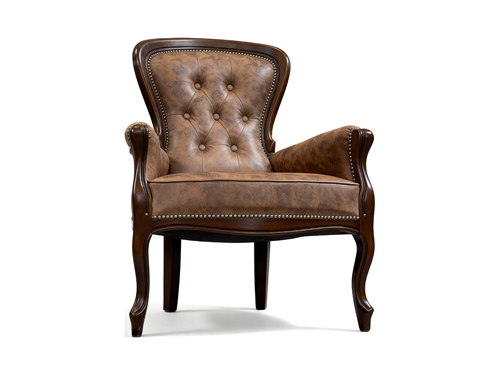 Уютное, мягкое кресло с роскошным дизайном станет достойным местом отдыха в гостиной, кабинете или у камина. На его спинку приятно облокотиться — она имеет продуманную форму, которая поддерживает спину и позволяет расслабиться. Объём и выразительность спинке придаёт декоративная утяжка пуговицами, а кант из мебельных гвоздей подчёркивает классический характер модели. Кресло выполнено по традиционным канонам классической мебели. Прочный каркас из натурального дерева и качественные обивочные материалы обеспечивают долгий срок службы, устойчивость и износостойкость.сть. Вариант обивки и цветовое исполнение деревянного каркаса Вы выбираете на свое усмотрение.