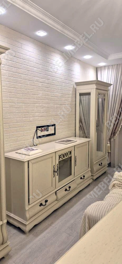 Шкаф с витриной ОСКАР, ручка слева, Белая эмаль + тёмная патина