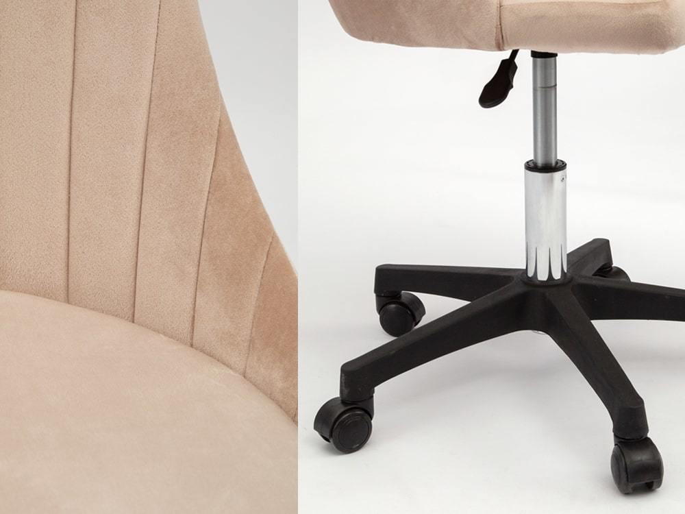 Уютное кресло для длительной работы за столом, у компьютера. Колёсная опора позволяет недалеко перемещаться, не вставая. Регулировка высоты сиденья - от 40 до 52 сантиметров от пола.