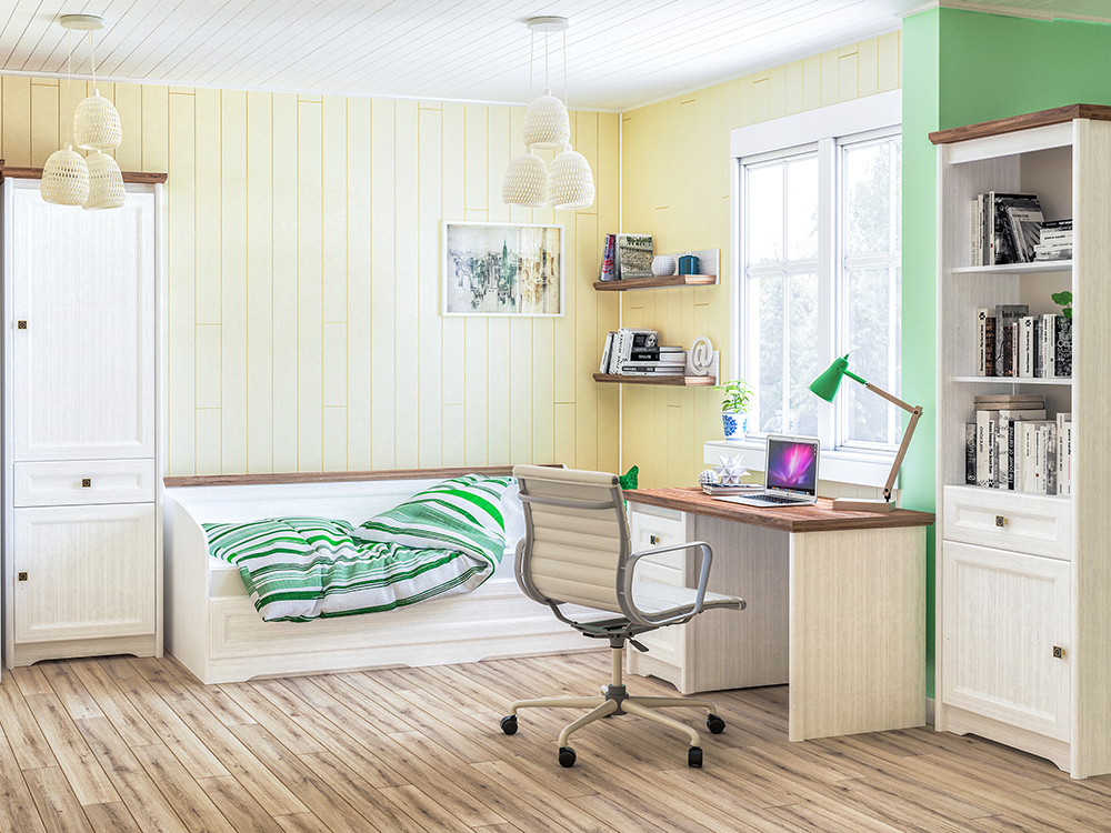 Кровать односпальная Тиволи МН-035-32. Обрамлёна рамочным фасадом. Оснащена ящиком с подъмным механизмом. Матрас в комплект кровати не входит. Новая коллекция мебели «Тиволи» - придерживается лучших традиций «легкого кантри» стиля, который легко совмещает черты прованской непосредственности и американской практичности, русcкого уюта и средиземноморской прохлады. Отличительной чертой стиля «лёгкого кантри» является применение в дизайне не более трёх основных цветов. В качестве основного выступает белый со структурой под дерево, а в противовес ему для создание контраста идёт тёмный цвет с текстурой дуба. Такая универсальная цветовая гамма мебели легко впишется в большинство интерьеров и будет идеальным решением для владельцев любой квартиры или дома.