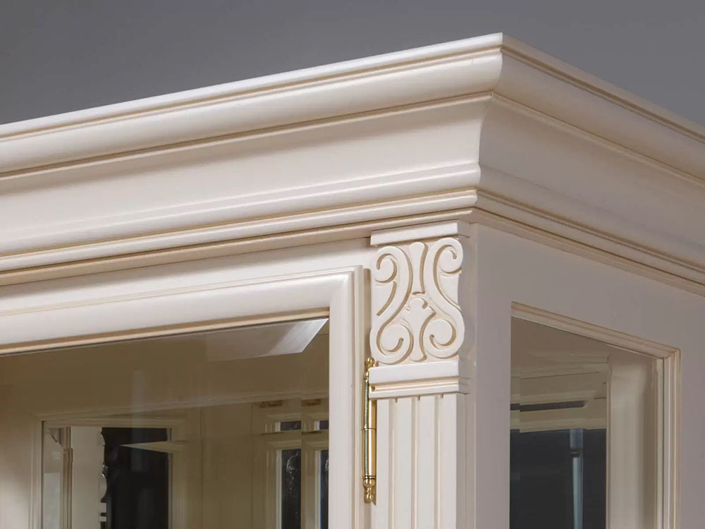 Шкаф с витриной ПОЛОНЕЗ, ручка слева, Белая эмаль золото, ММ-174-01/01