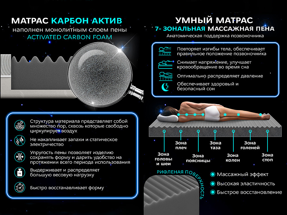 | Наполнитель (слои): | Пена Carbon Foam 7 зон → Монолитный слой пены |
