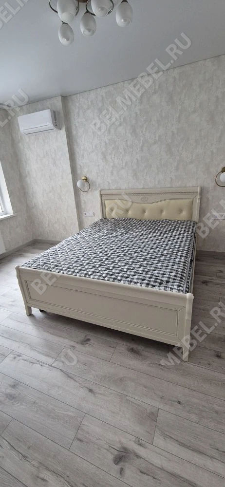 Классическая двуспальная кровать из массива дуба с мягким изголовьем является центром притяжения спальни, её сердцем. Именно поэтому она несёт на себе все элементы принадлежности к коллекции «Лика», такие, как узнаваемая резьба, изящная линия, огибающая резной же медальон.