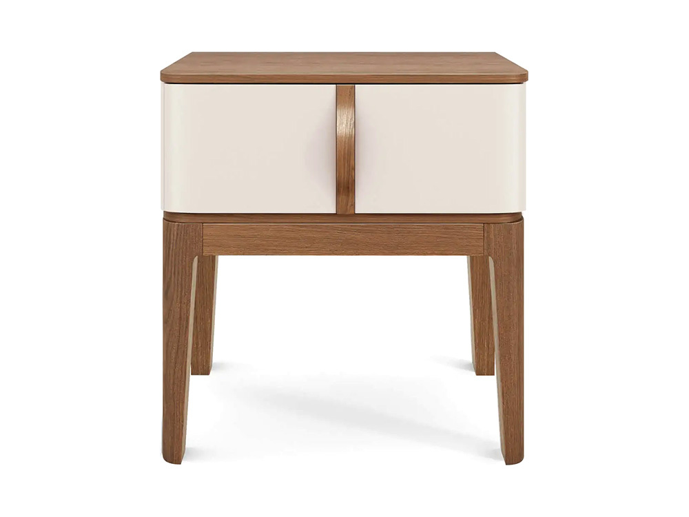 Прикроватная тумбочка выполнена в стиле «современная классика», объединяющем строгие прямые формы и традиционные для прежних мебельных эпох витиеватые узоры.